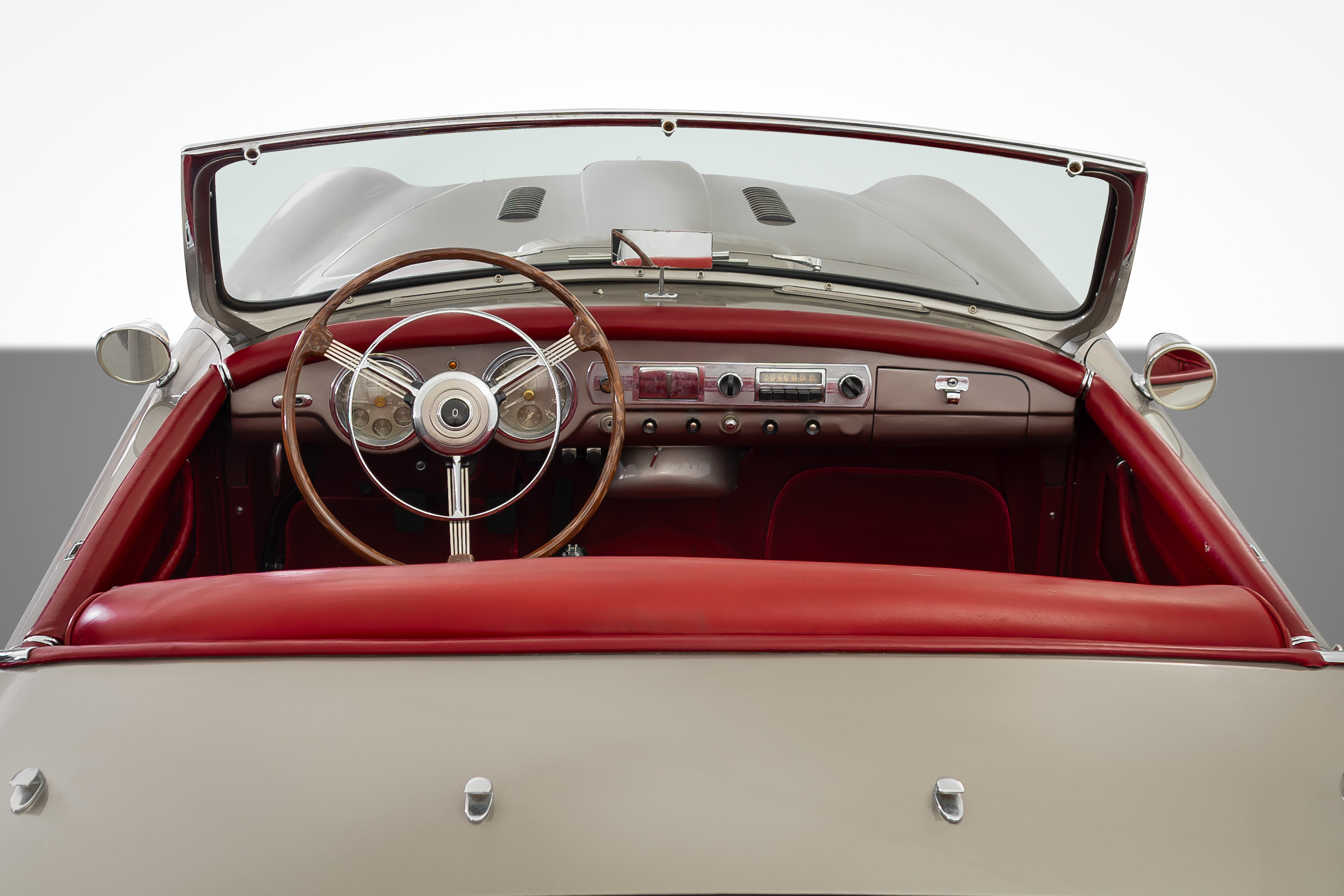 While the drivelines and engine were built by Nash-Kelvinator in Kenosha, Wisconsin, the frames and suspension were built by the Donald Healey Motor Company in Warwick, England. Once the rolling chassis was assembled, it was then shipped to Italy. In contrast to the 1951 model, this latest version had a body restyled and built in Italy by the renowned Batista “Pinn” Farina – Pininfarina. The result was an amazing yet expensive attempt to combine the best offerings of three different countries. The Nash-Healey Roadster cost nearly double compared to the new Chevrolet Corvette!