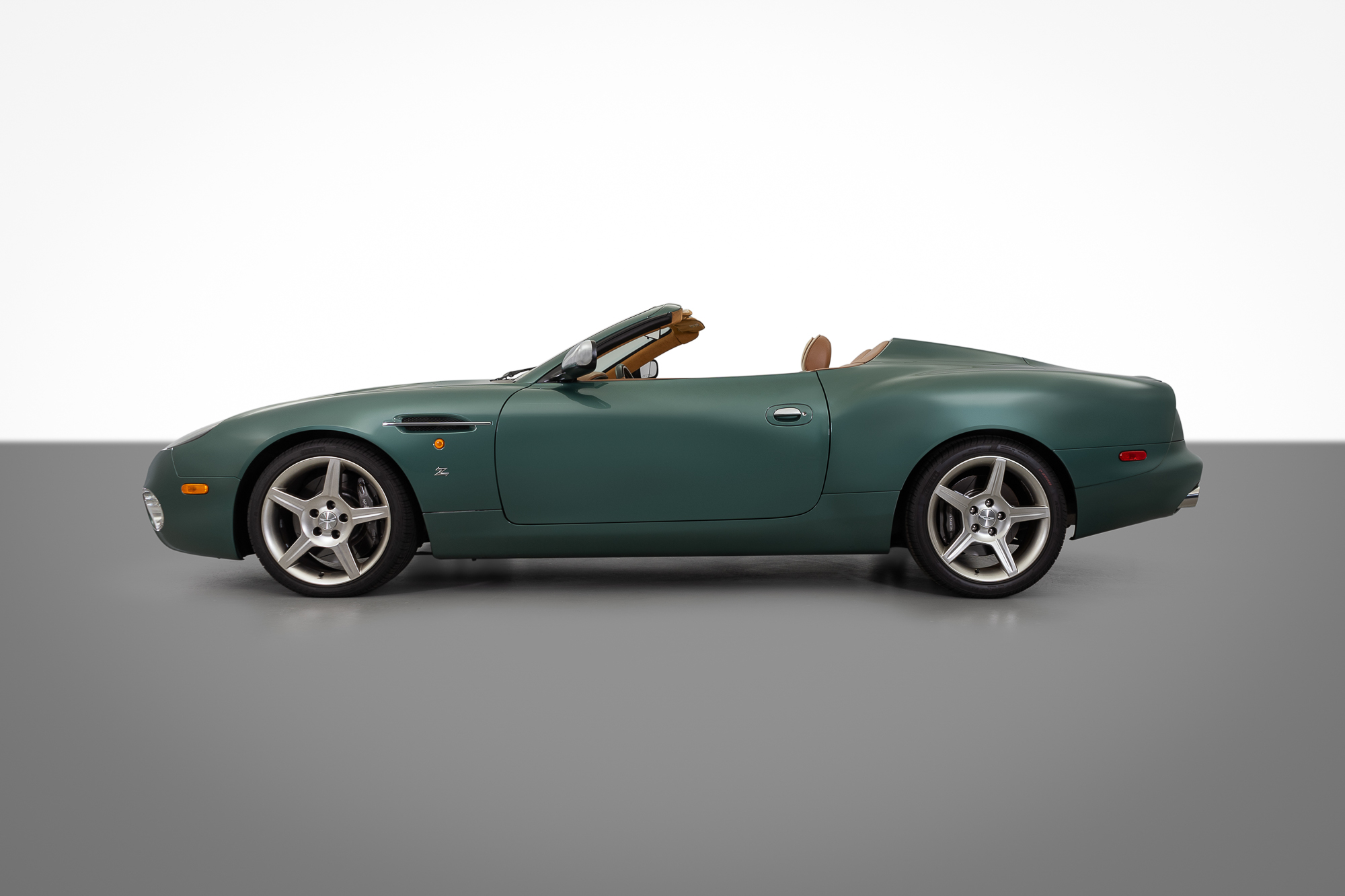 The vehicle is based on the Aston Martin’s DB7 Vantage Volante, with styling provided by Italian coach builder Zagato. The roadster was produced with quite an optimistic design feature: The car has no roof. Nada. Not a convertible, not a Targa, not a T-top. Nothing between the driver and the sunny skies above.