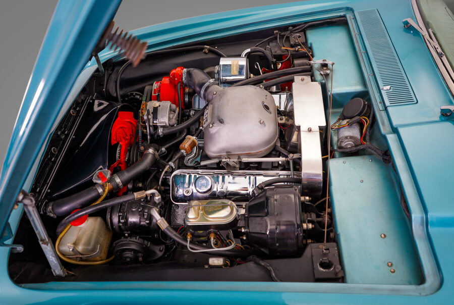 In order to achieve the car’s unique body shape, the outer panels were manufactured in fiberglass. The “bottom breather” design takes in air from beneath the front of the vehicle, eliminating the traditional front hood grill. This is a highly modern look, even today, that you’ll find on certain Porsche, Corvette and Infiniti models.