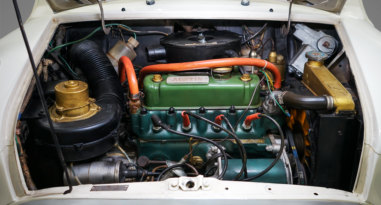 The left-hand drive Mini is powered by an 850cc A-series 4- cylinder engine, which might be small but “It’s part of the backbone of English motoring, which makes it quite hardy and boasts easy parts availability” the dealer says. “When matched with the four-speed manual transmission, the performance can be quite nippy,” he adds. “Add in a nice modern-tread tire and steering that is so exact it feels telepathic, and you’ve got in your hands all the reasons why people are passionate about driving a Mini.”