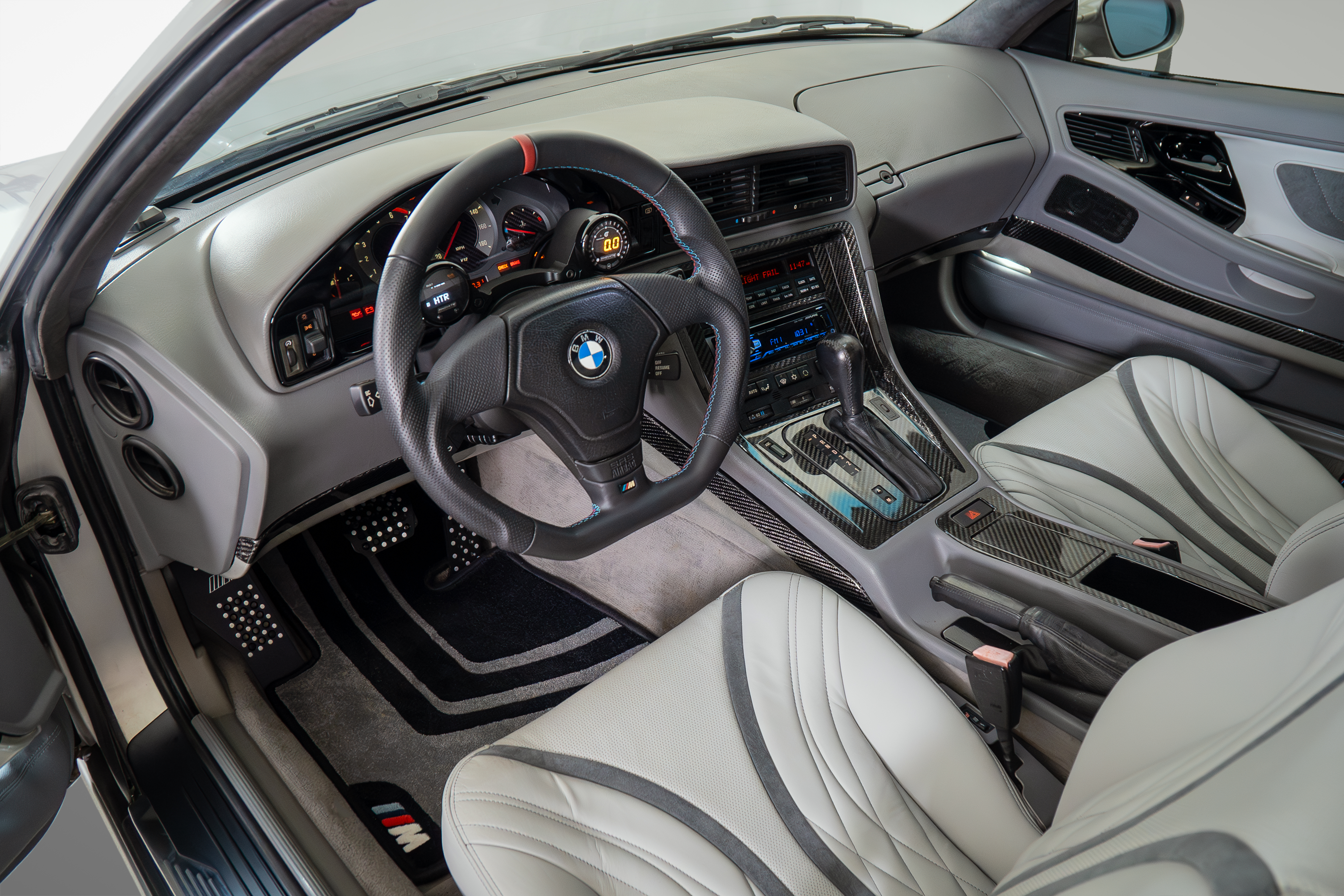 The 850i was a technological showcase, boasting cutting-edge luxury features such as remote keyless entry, dual-zone climate control, a power tilt-and-telescope steering wheel, a twelve-speaker stereo, and windows that automatically closed at high speeds. An active five-link rear suspension helped steer the 850i at the limit, and an early form of electronic stability control helped keep the big coupe on course. Under the hood, an aluminum-block, 5.0-liter V-12 used the industry’s only drive-by-wire electronic throttles and was attached to one of the world’s first six-speed manual transmissions.